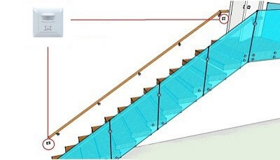 Bộ cảm biến cầu thang hoạt động dựa trên nguyên lý phát hiện chuyển động để điều khiển hệ thống đèn bật/tắt tự động.